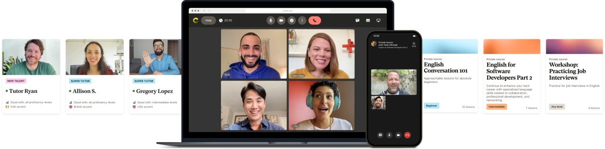 世界中の学習者と一緒に、楽しいグループレッスンに参加しましょう。一番お手頃なプランで、気軽に英語を始められます。